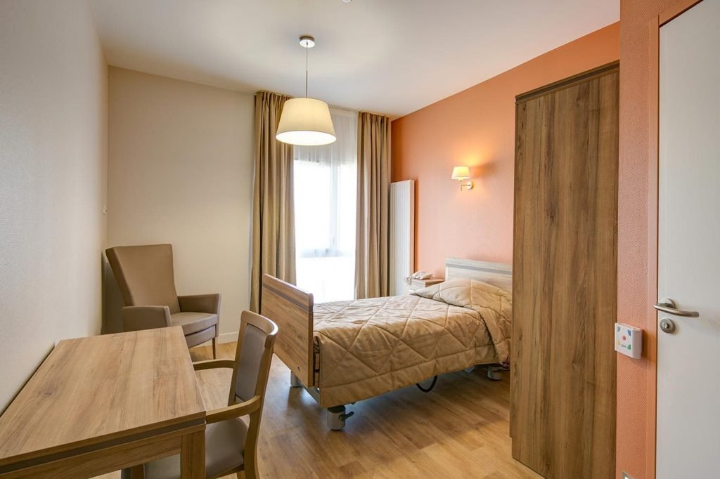 Au sein de l’établissement, les résidents bénéficient d’une chambre double ou individuelle, véritable espace intime, aménagée d’un grand lit médicalisé, d’un chevet, d’un bureau avec chaise, d’une armoire.