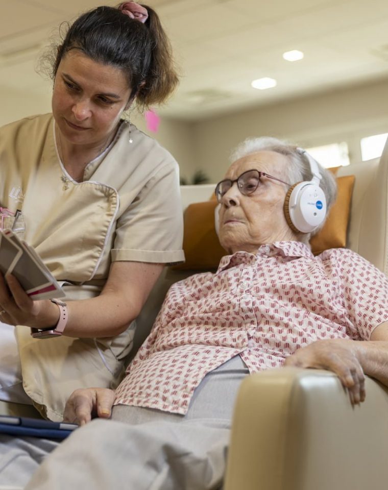 - différents espaces de bien-être et de soin : espace Snoezelen (stimulation sensorielle), salle de balnéothérapie, salle de kinésithérapie, espace PASA (Pôle d’Activités et de Soins Adaptés)